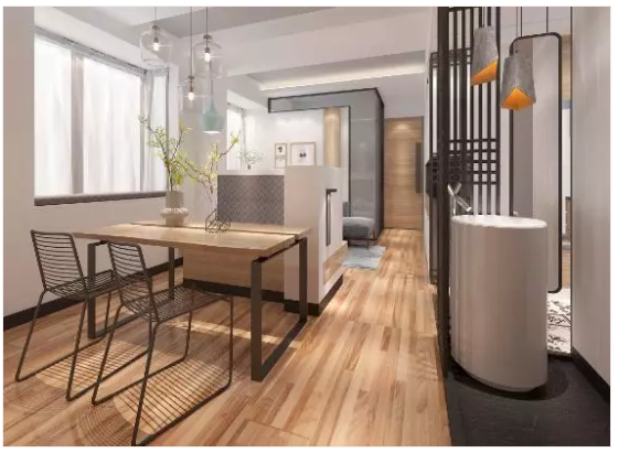 小戶型空間本就不多,再強調(diào)區(qū)域的劃分會顯得空間內(nèi)各個區(qū)域更狹窄。很多人為了突出區(qū)域感,會用不同的材質(zhì)與高度來加以劃分區(qū)域,于是在小戶型中造成了“回廊”現(xiàn)象,阻礙視線又浪費空間。