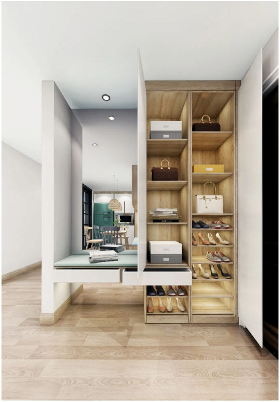 - 簡約風小戶型二居室,臥室里還擠出了衣帽間!